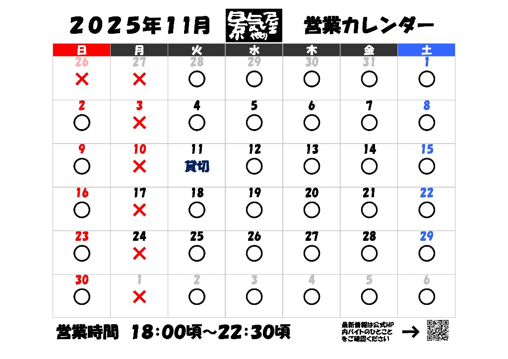 11月営業カレンダー