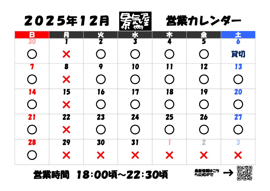 12月営業カレンダー