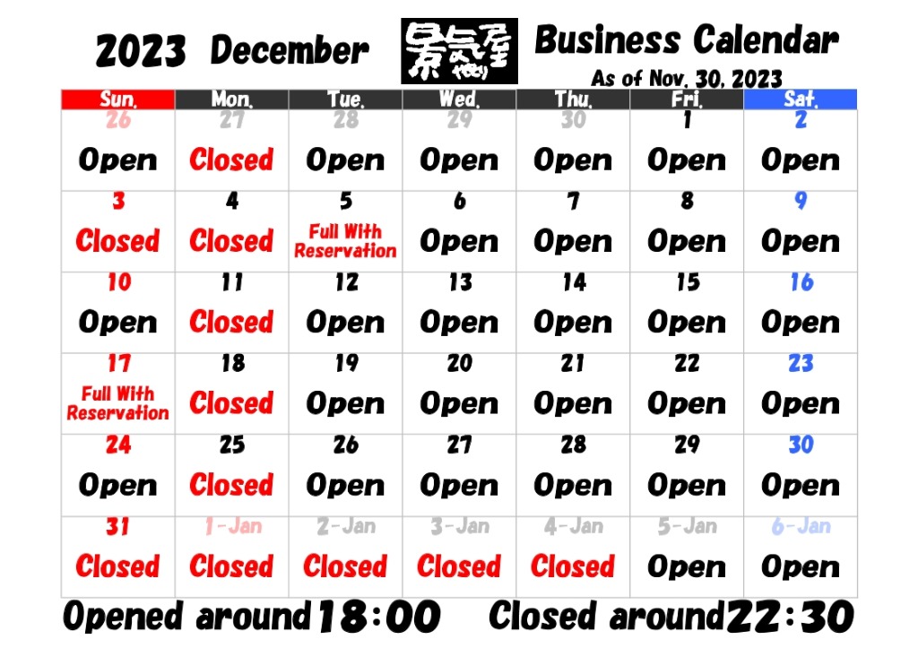 2023年ラスト1か月も、景気屋を宜しくお願い致します。