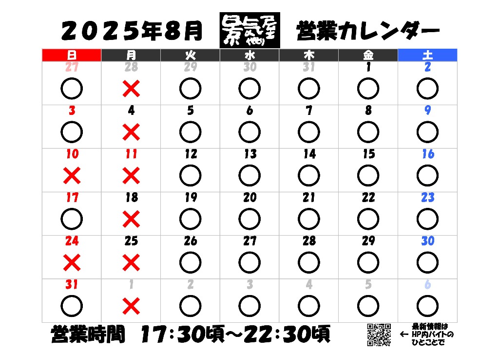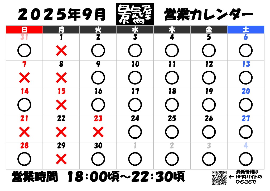 今月より営業開始を30分早めてご来店ををお待ちしております。